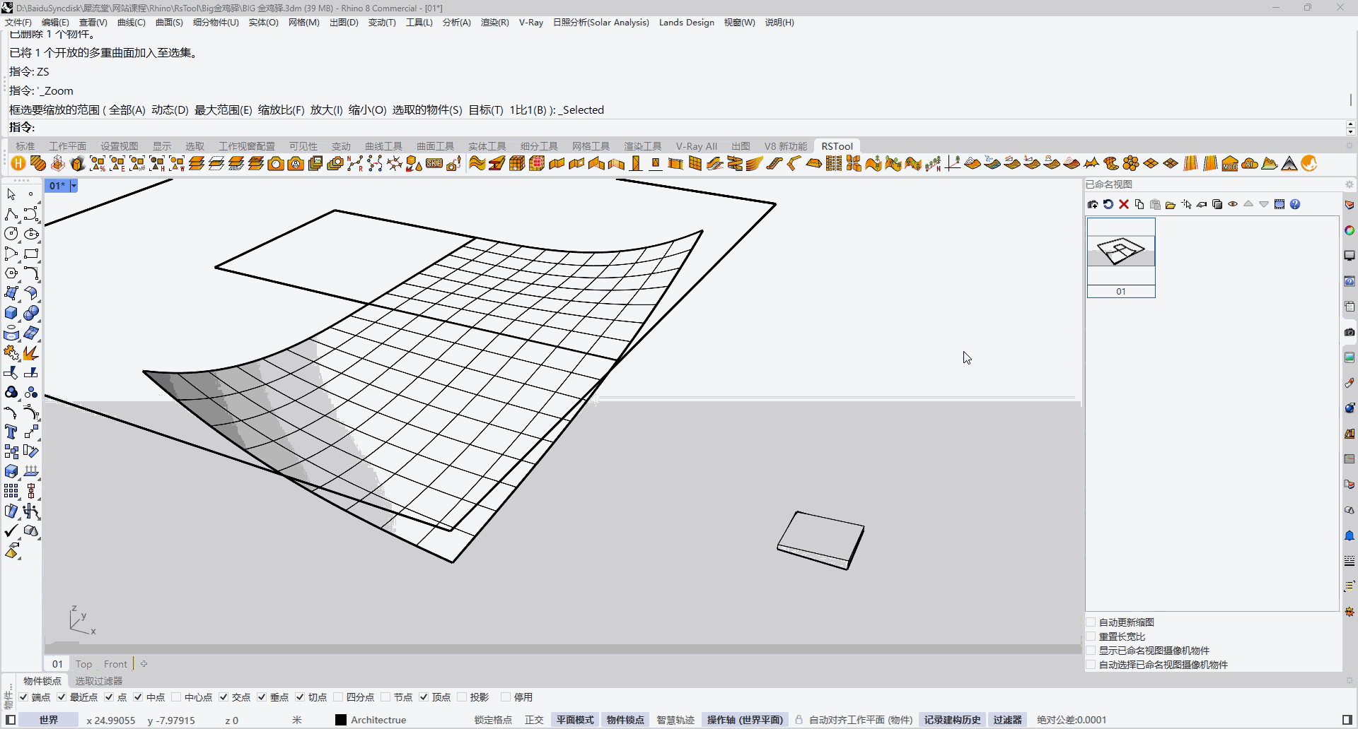 首先在rhino当中建立基础面,为了旋转阵列能对齐接缝,我们选择建立两个分开的曲面,确保连续性一致。
