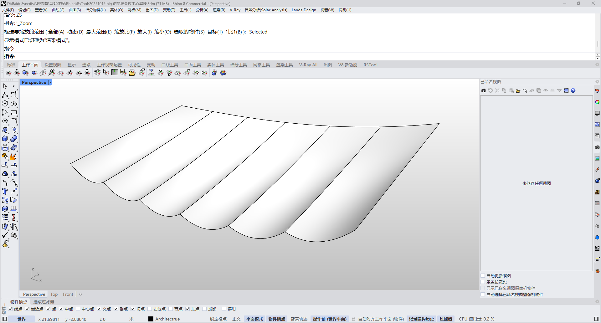 这个案例将会展示,如何使用RsTool,快速建立BIG设计的这个会议中心的屋顶表皮。